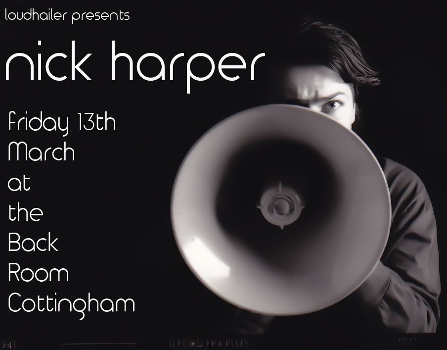Rich and I are delighted to announce that the superb Nick Harper will be playing a Loudhailer Special at The Back Room in Cottingham on Friday 13th March 2015. Tickets are £12 and are sure to fly out, so call The Back Room on 01482 847007 to book.