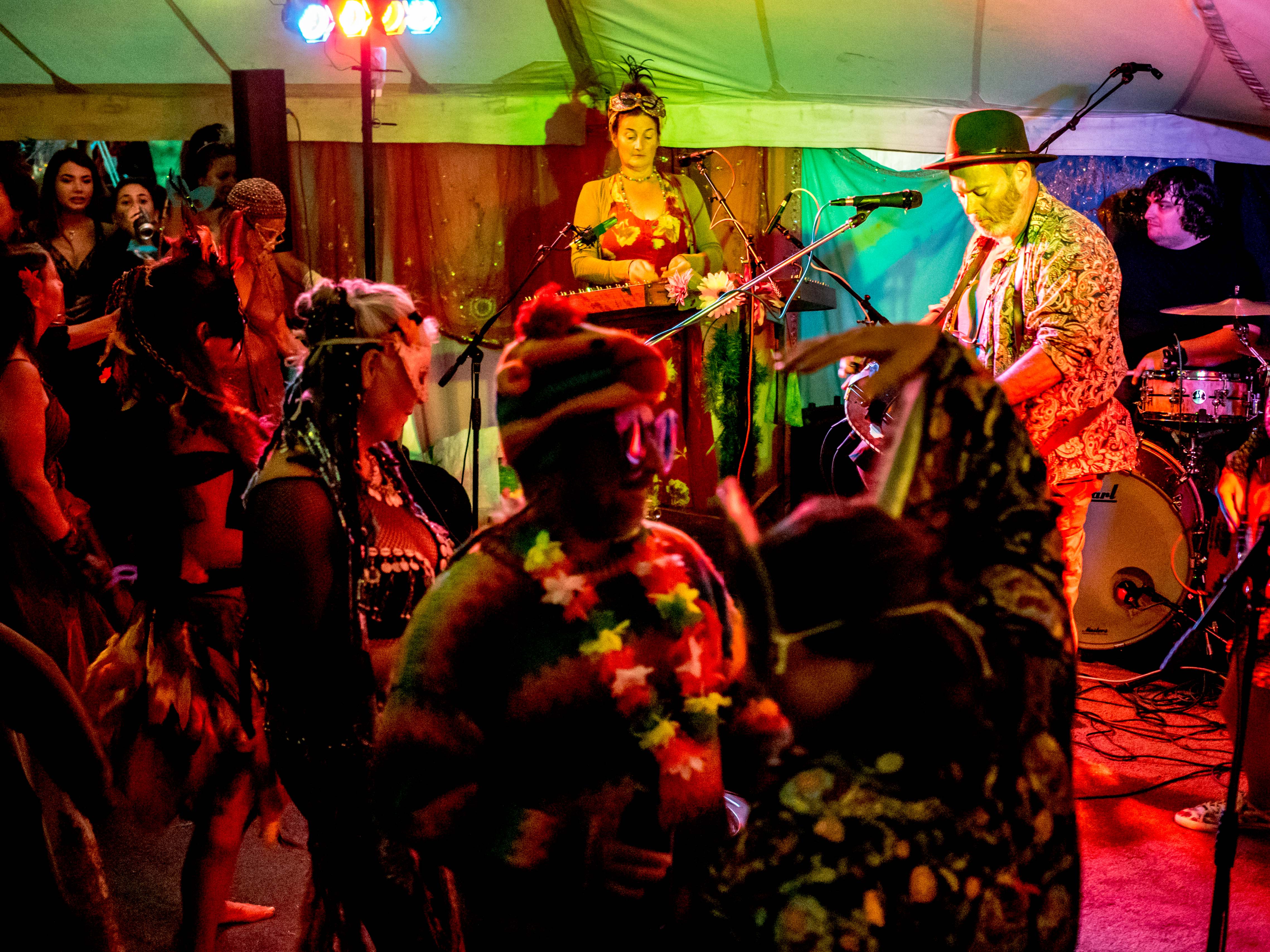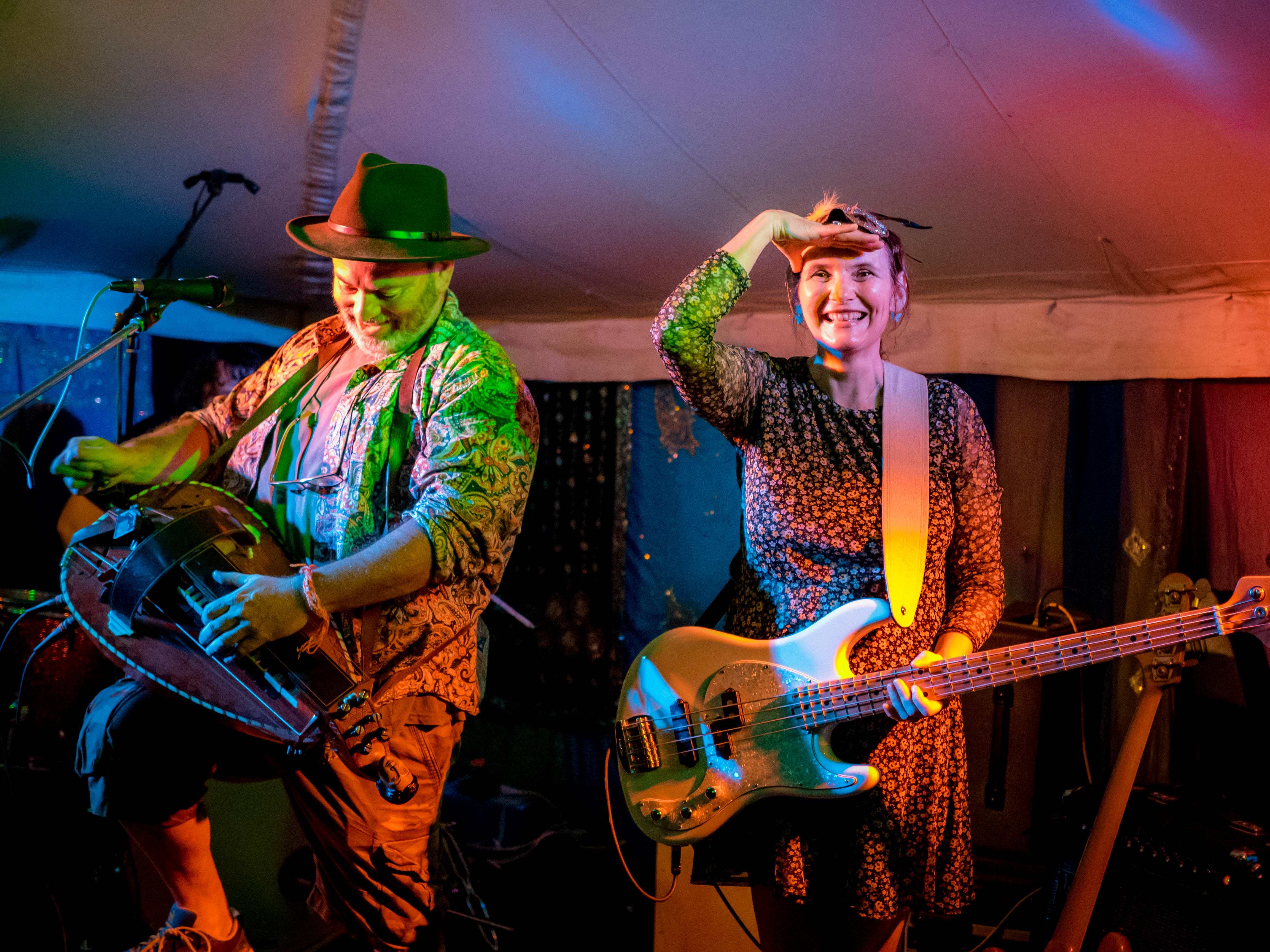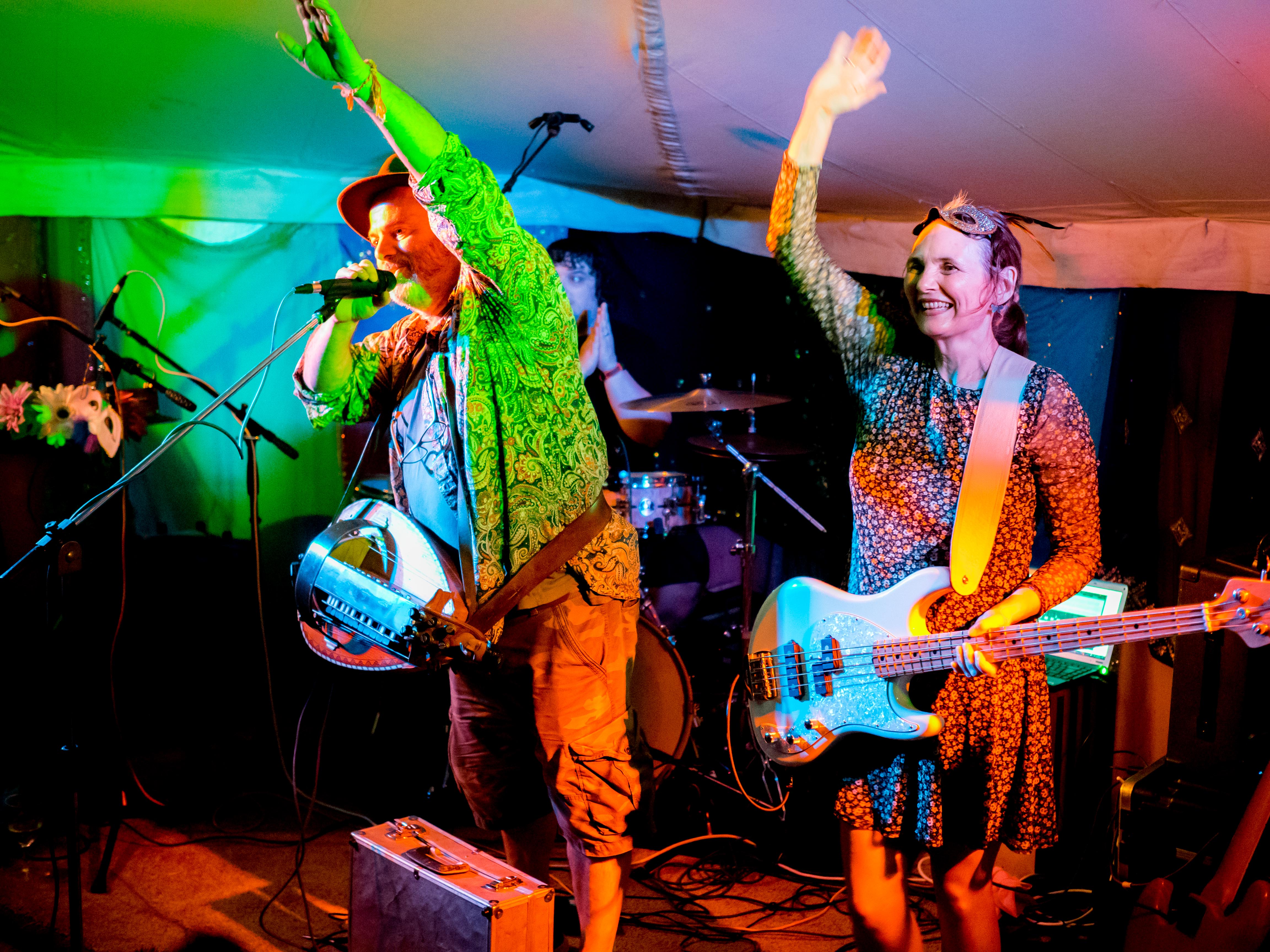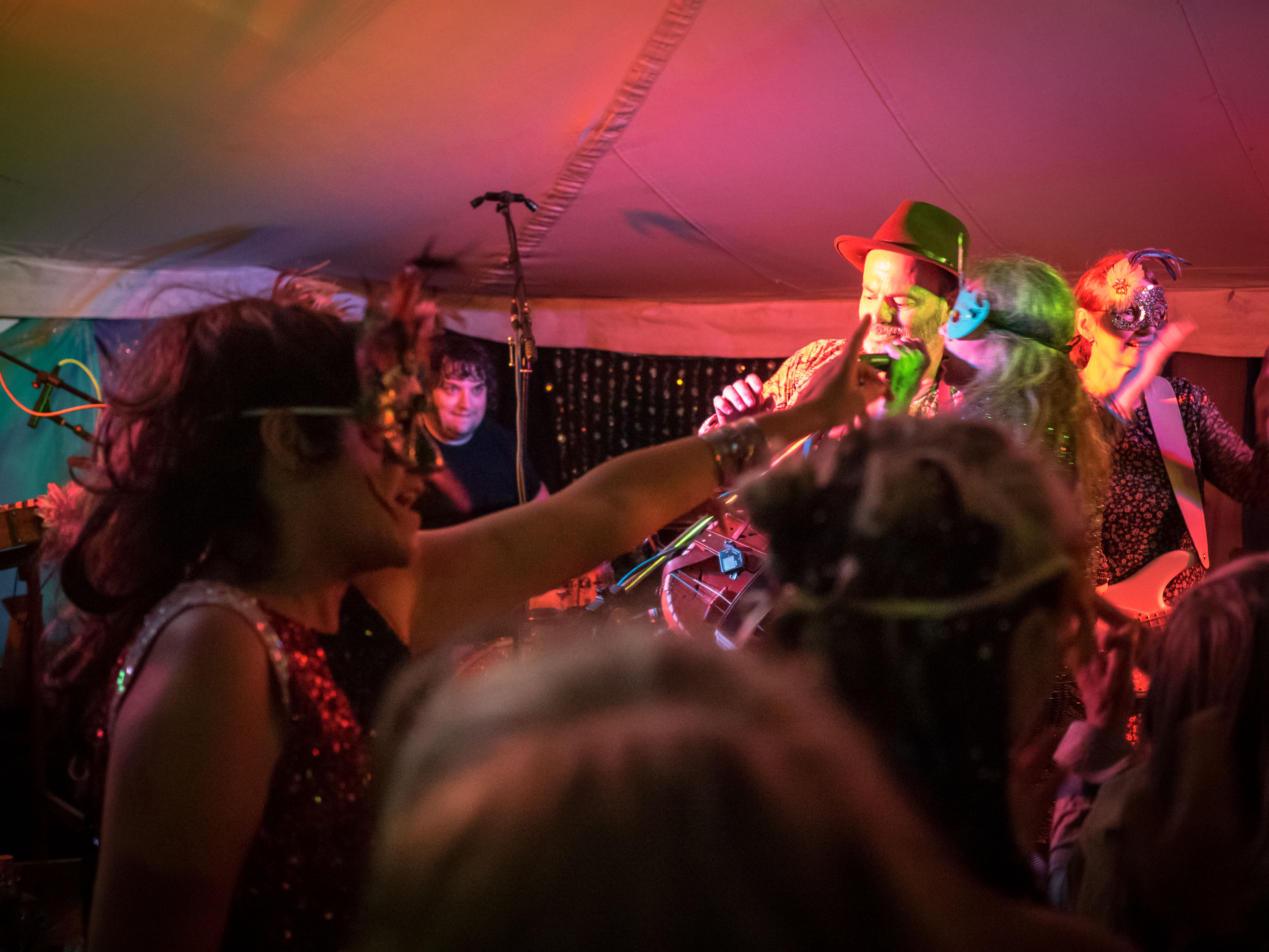 The last of a terrific set of summer festival gigs with Celtarabia was at the Rainbow Summer Camp in Gloucestershire, a lovely peaceful gathering, reminiscent of the free festivals of yore. Celtarabia starred at the festival’s grand Masked Ball, what a marvellous experience. Superb dancing throughout the night and a fantastic vibe made for a brilliant time. Special thanks to sound engineer Joe who showed me his lovely vintage fretless Fender Jazz Bass. It was so cool I played it for most of the set. Cheers Joe!