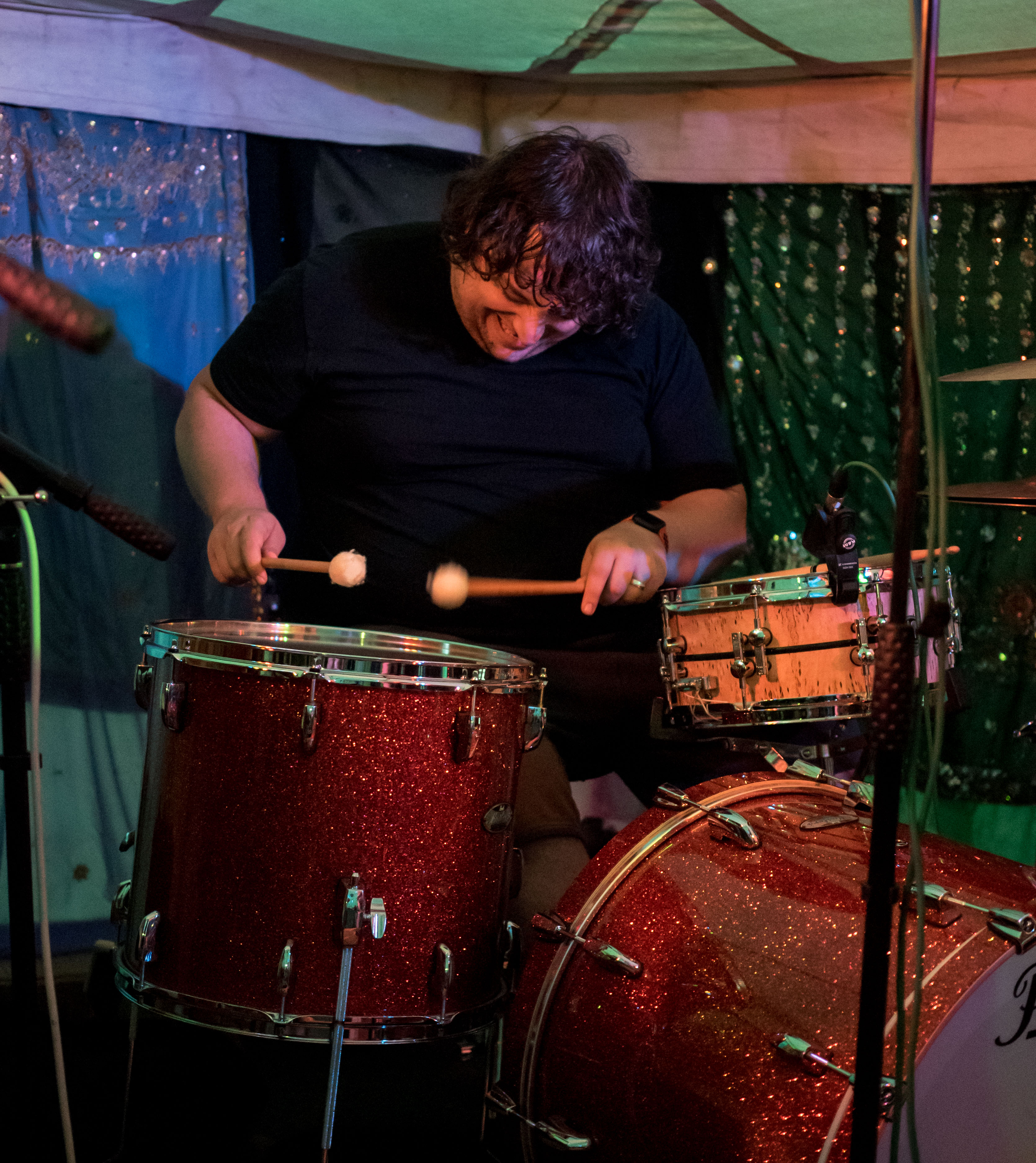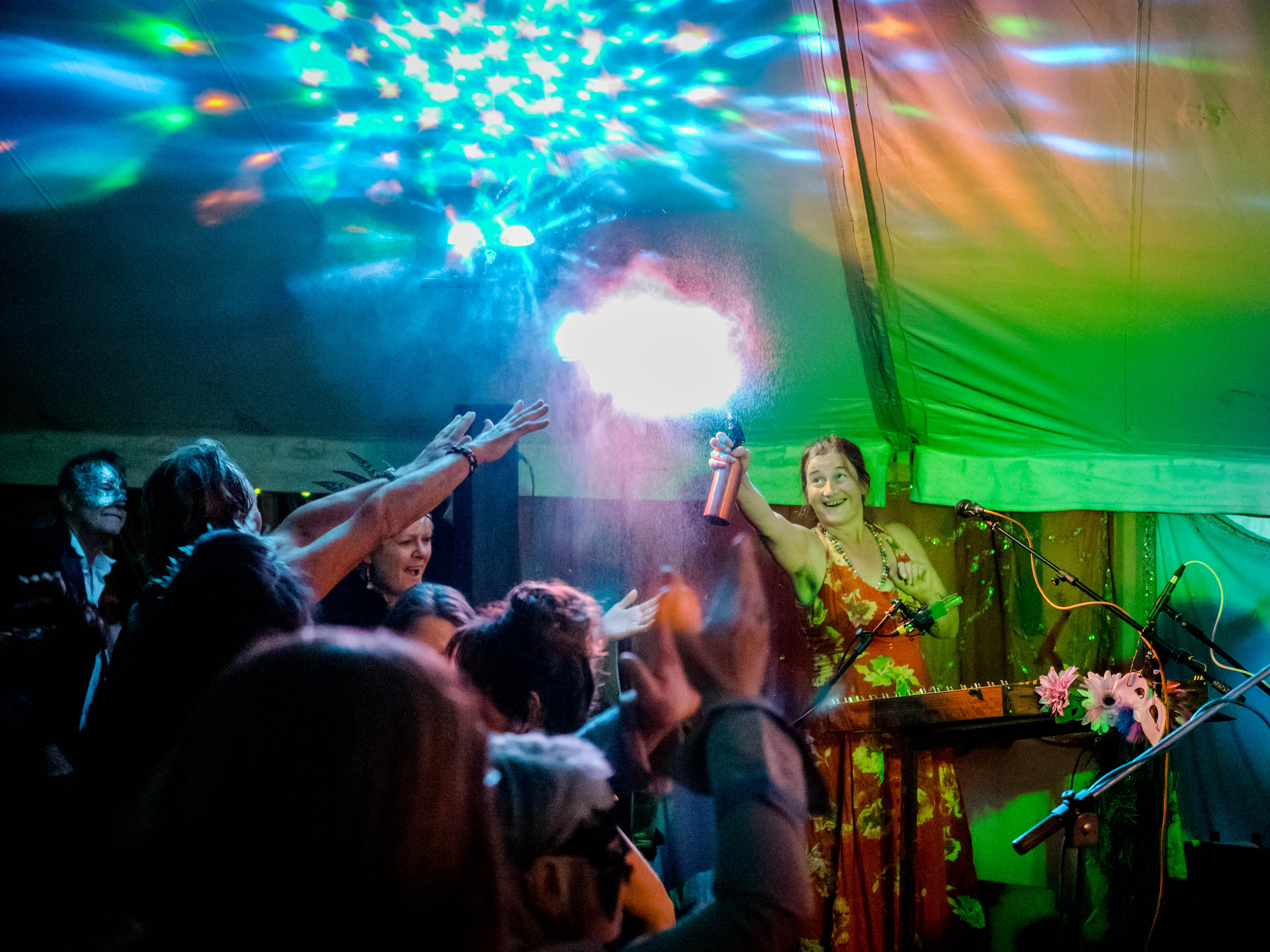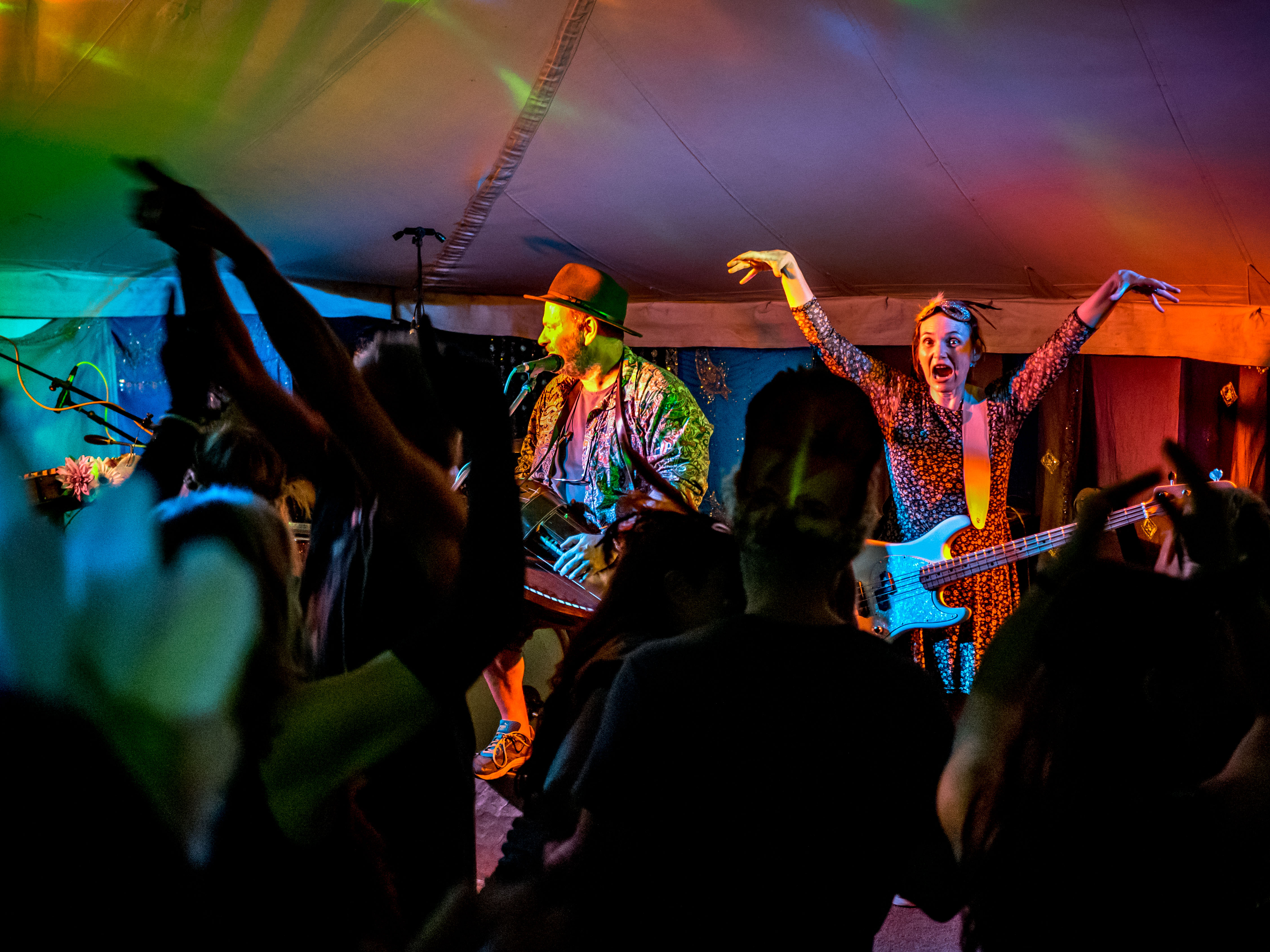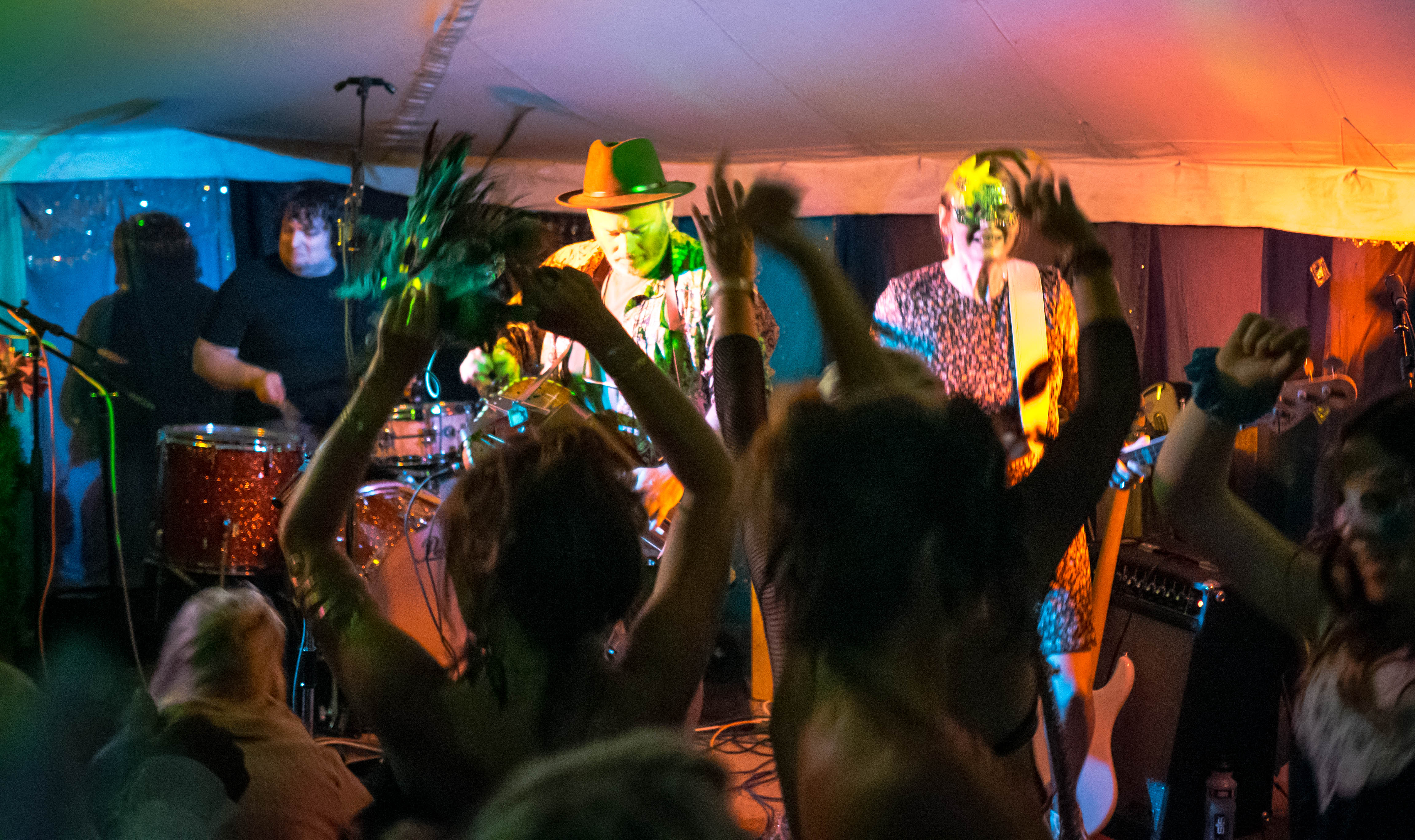 The last of a terrific set of summer festival gigs with Celtarabia was at the Rainbow Summer Camp in Gloucestershire, a lovely peaceful gathering, reminiscent of the free festivals of yore. Celtarabia starred at the festival’s grand Masked Ball, what a marvellous experience. Superb dancing throughout the night and a fantastic vibe made for a brilliant time. Special thanks to sound engineer Joe who showed me his lovely vintage fretless Fender Jazz Bass. It was so cool I played it for most of the set. Cheers Joe!