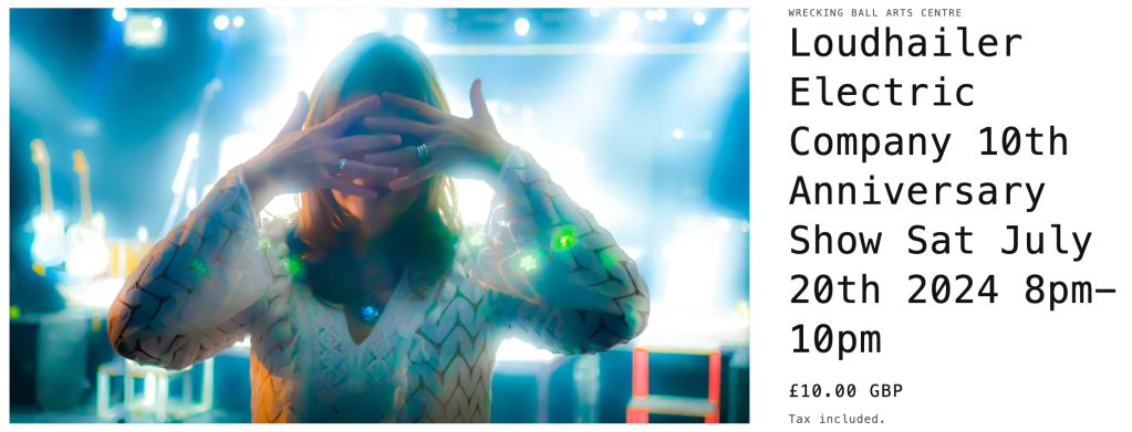 LOUDHAILER ELECTRIC COMPANY GIG ALERT! Yippee, it’s our 10th anniversary and we are celebrating with a gig at the Wrecking Ball Arts Centre, Hull, on Saturday 20th July. We would be delighted if you would come and join us! Info and tickets click here.