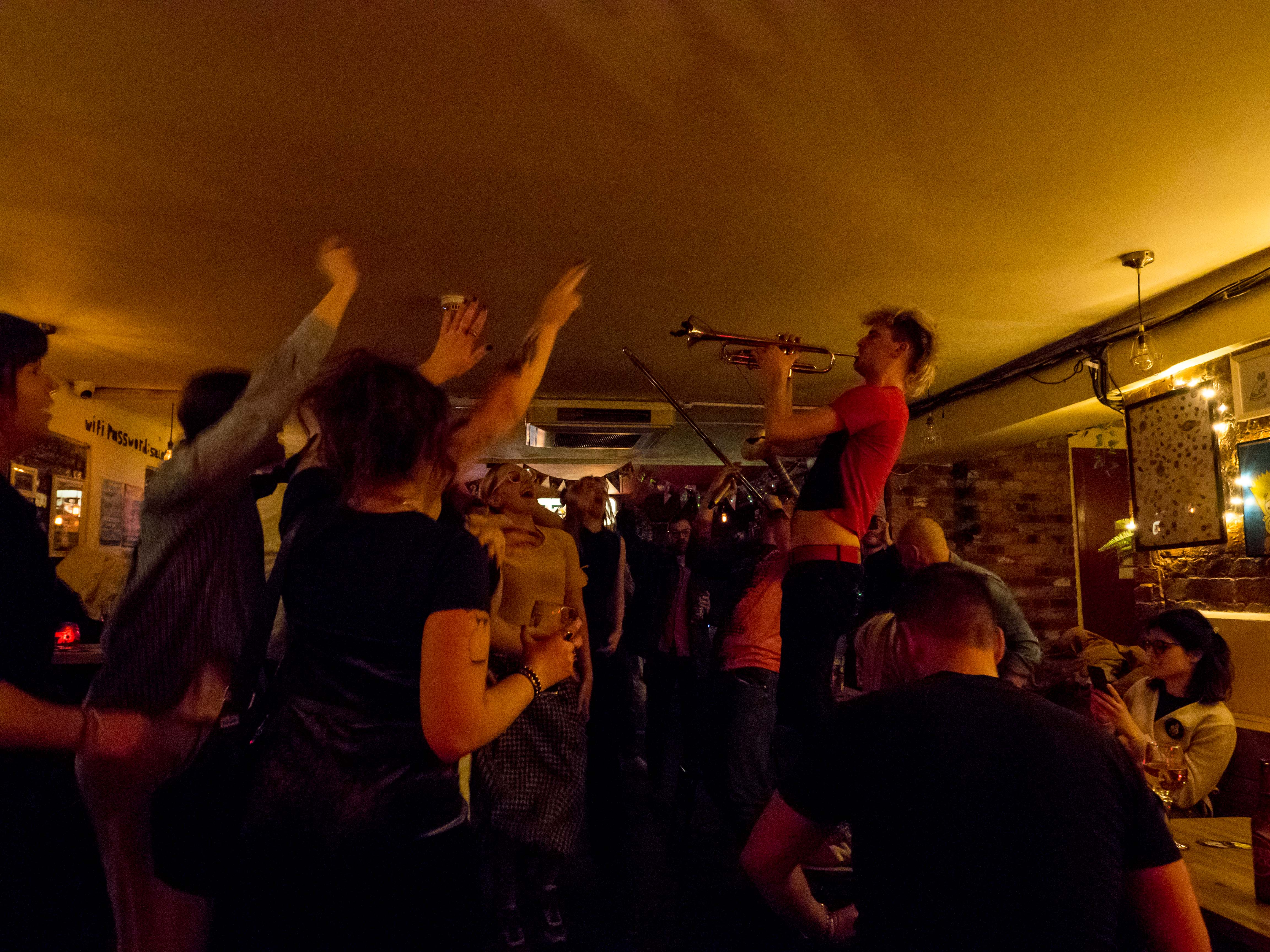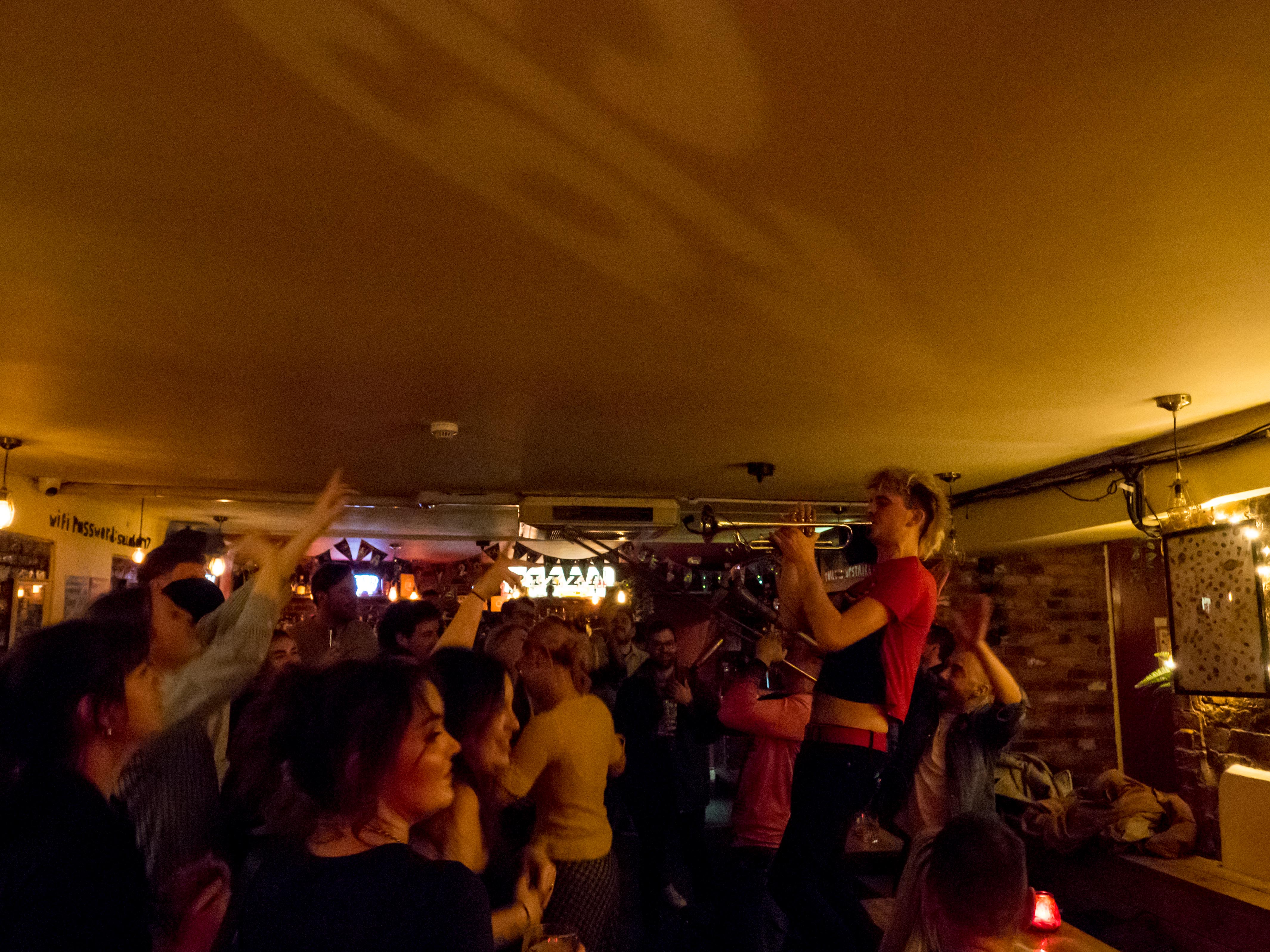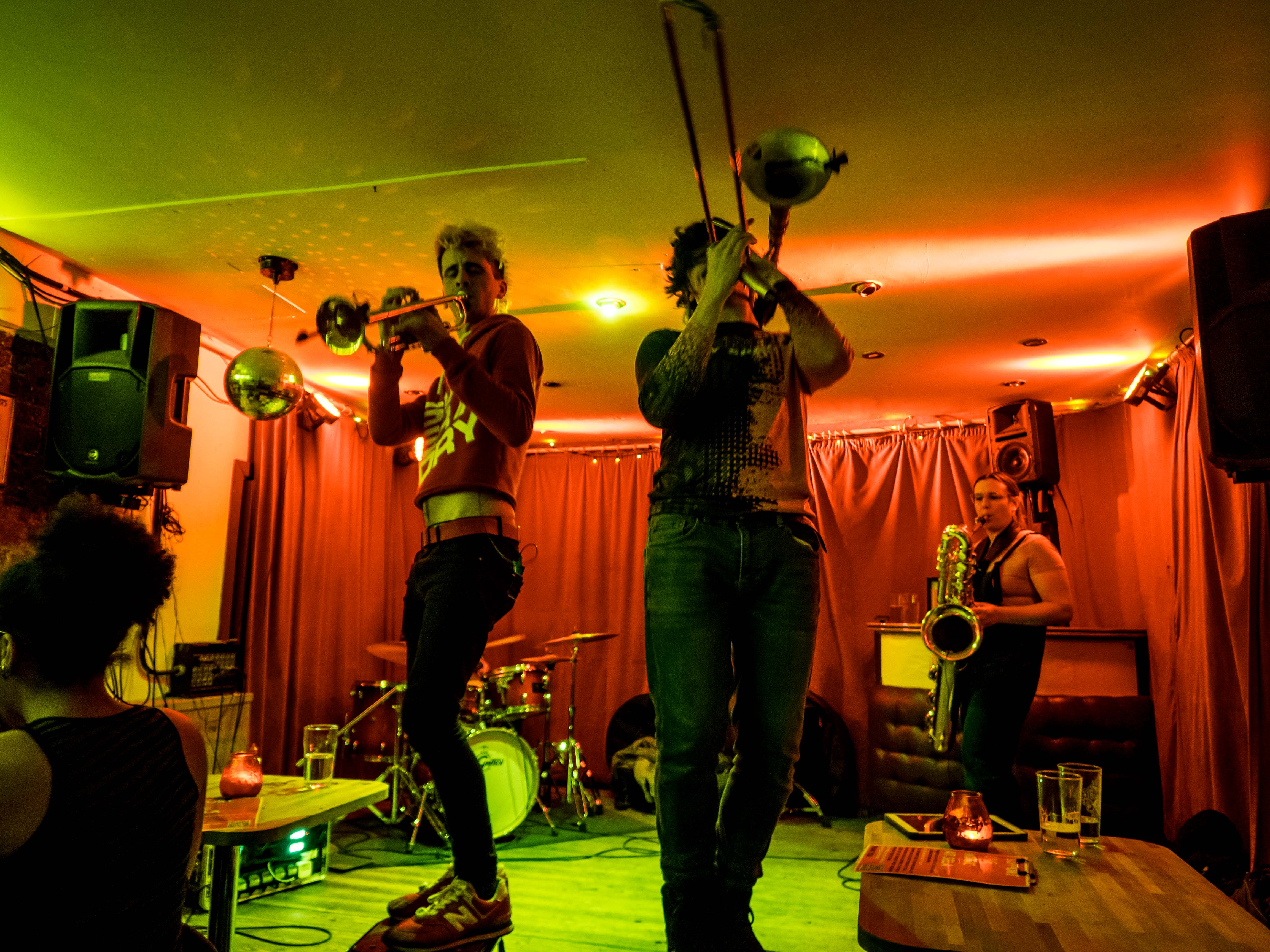 Loud Noises comprise trombone, trumpet, baritone sax and drums playing a full on high energy set. Their website says they bridge the gap between contemporary brass and high octane dance. Perfect, great band, great venue.